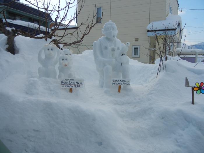 各家庭の敷地内に、概ね1.5m×1.5m×1.5mの大きさで雪像を作るというもので、様々な雪像がお目見えし、町内会がミニ雪まつり会場のようになっておりました。