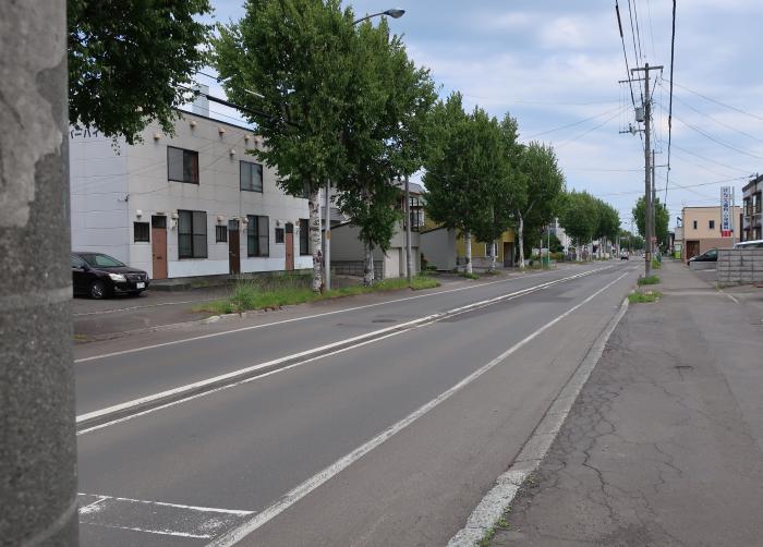 東月寒地区センターを通り過ぎて信号のある交差点を右に曲がり、長い直線道路を進みます。