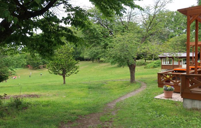 パークゴルフ場の脇道を道なりに進みます。緑がきれいです。