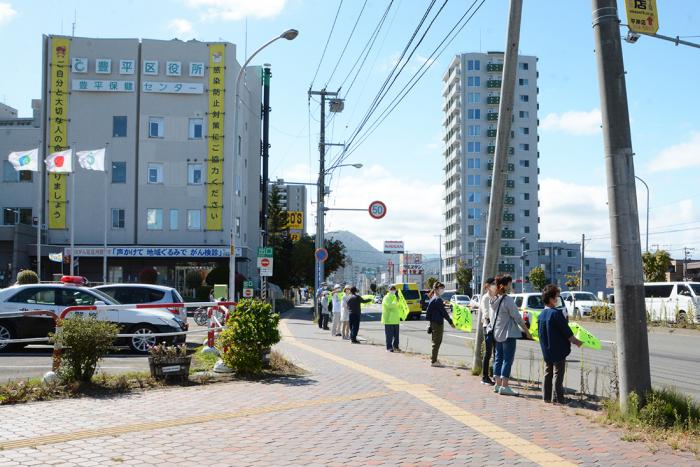 ~豊平区役所前交差点で交通安全運動街頭啓発活動実施(2022年9月14日)~
