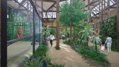 このような経過をたどりつつ、築後40年が過ぎ、施設の老朽化も進んだことから、オランウータンの動物福祉のさらなる向上と、多くの来園者の方に東南アジア熱帯雨林の環境や生物多様性の重要さを実感していただくことを目的として新施設の建設が決まりました。