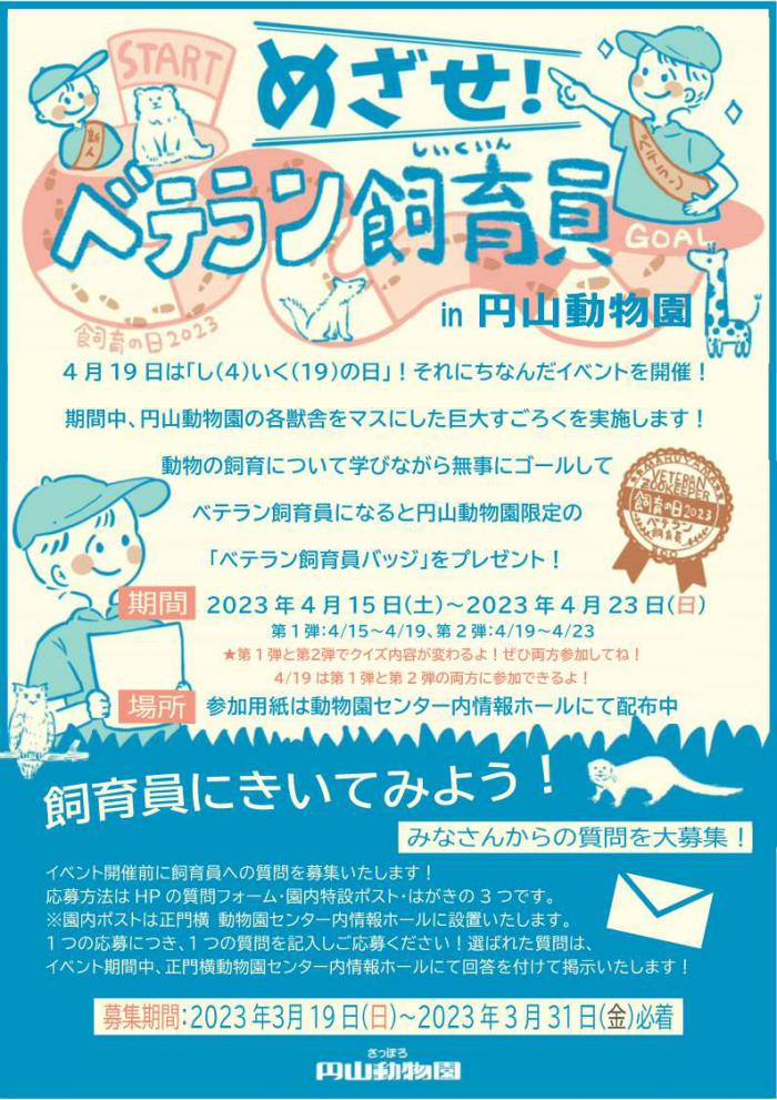 公益社団法人日本動物園水族館協会において、「飼育に関する各種行事を行うことで、動物園、水族館に対する、国民の一層の理解を得ること」を目的として、毎年4月19日を「飼育(しいく:419)の日」と定めています。