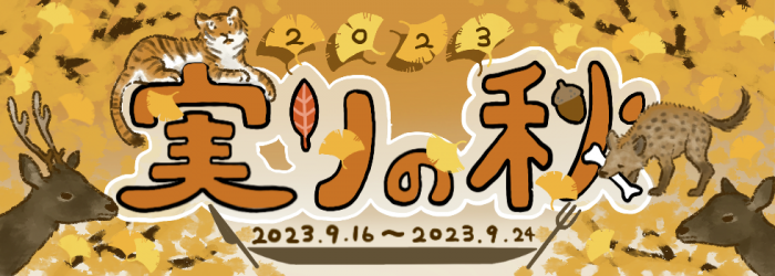 円山動物園では、動物たちの食に着目し、動物たちの生態をじっくり観察していただくイベントとして、実りの秋2023を開催いたします。